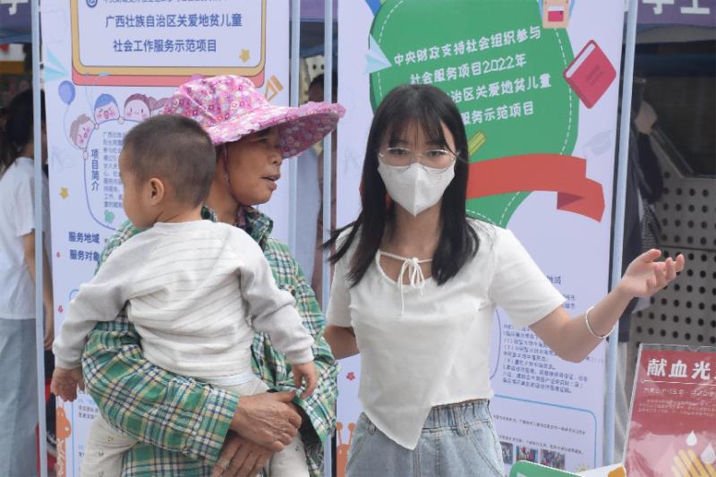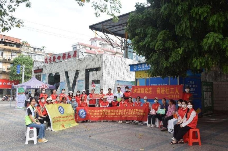 本次活动分两场举行,分别在10月27日和11月3日上午。在社工党支部教师和阳光雨露社工的带领下,2076班社会工作专业的员工志愿者们在南宁市武鸣区文化广场开展活动,通过向武鸣居民普及地贫防治知识,营造全社会关爱地贫儿童的良好氛围。