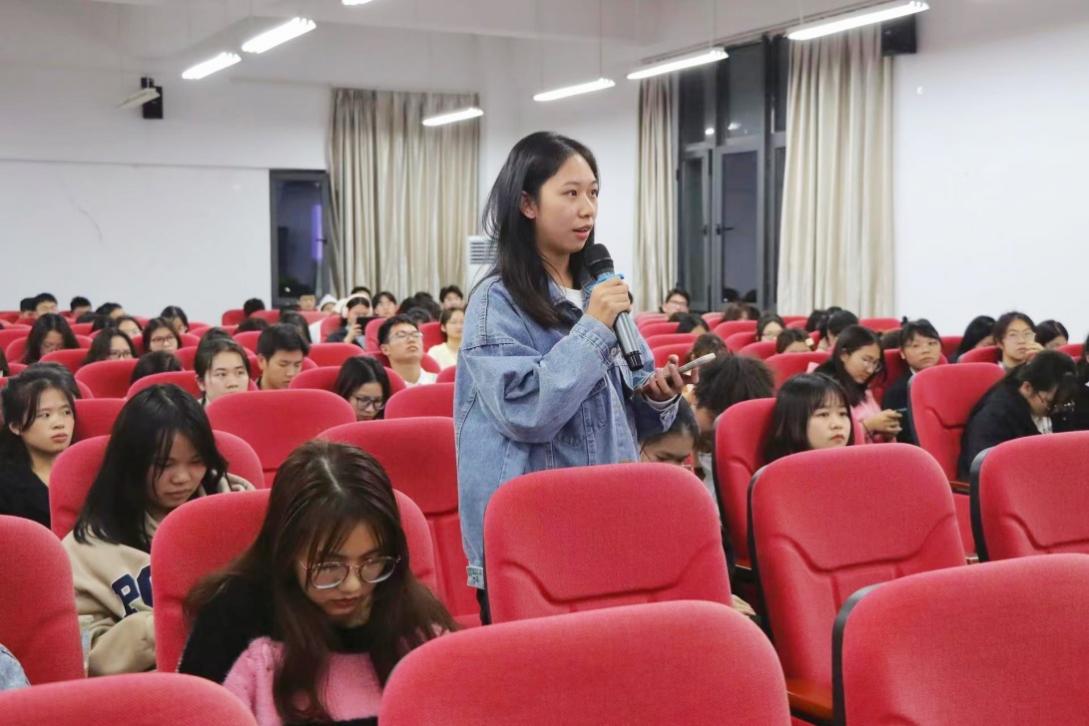 宣讲会现场,中国人寿保险股份有限公司企业代表从关于我们、发展理念、岗位需求、薪资待遇等方面做了详细介绍。保利中轻养老企业代表对保利公司的业务概况、护理国际人才育成计划以及现阶段养老市场进行了深入的介绍与分析,分享了赴日学习介护知识学长学姐的宣传短片。交流环节,同学们就实习、就业待遇、招聘面试流程以及校企联合培养等问题进行提问。在场企业代表以及公司老师为大家耐心解答,同学们积极踊跃发言,现场氛围活跃。