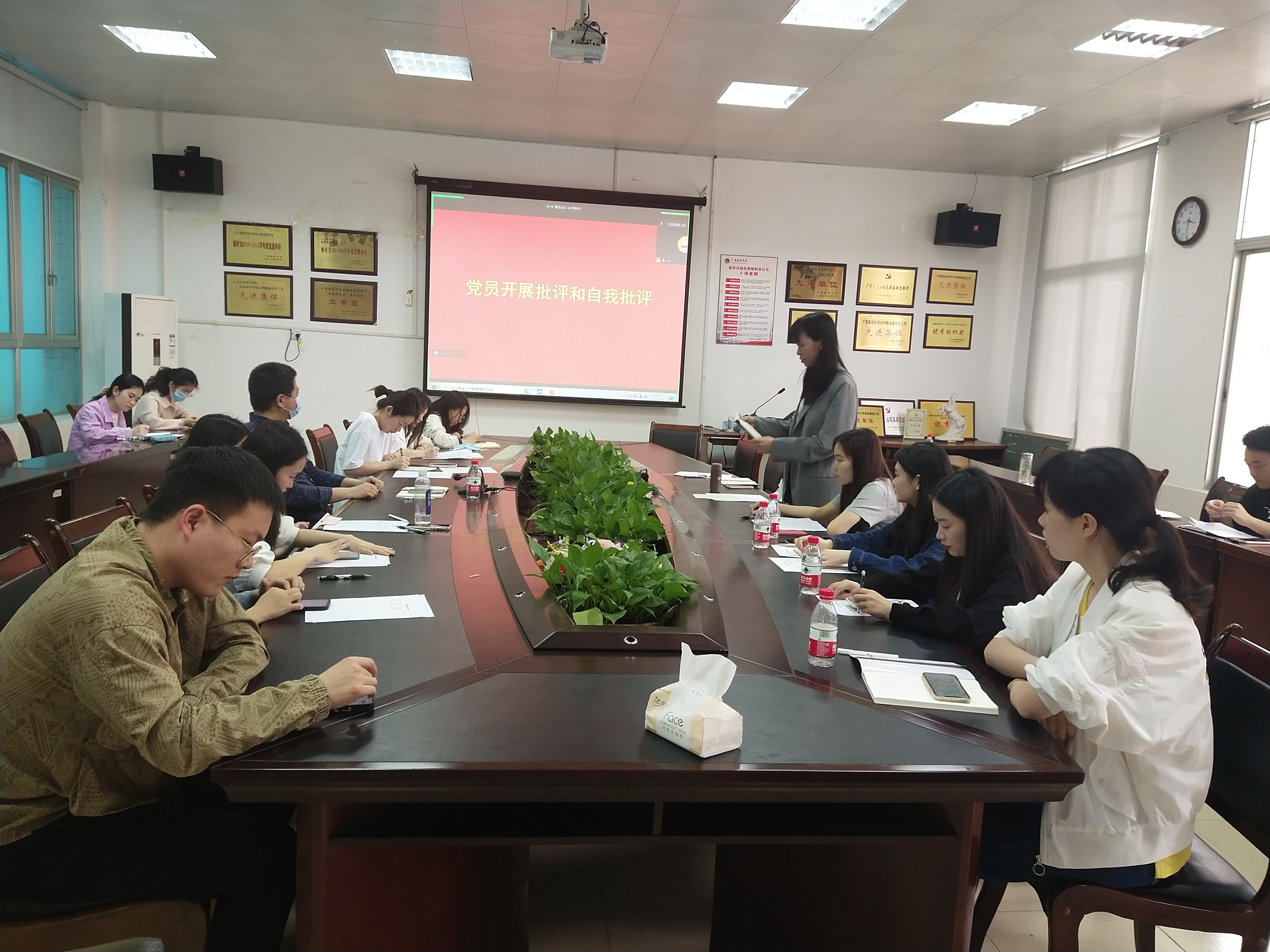 第四项议程为党员开展批评与自我批评。首先由4位支部委员带头进行自我批评,接着与会党员分别从最近一段时间思想、学习、生活等方面的实际情况对自己进行自我反思和自我检讨,存在着理论学习的深度不够,学习主动性不强以及做事拖延等问题并提出了改进措施。