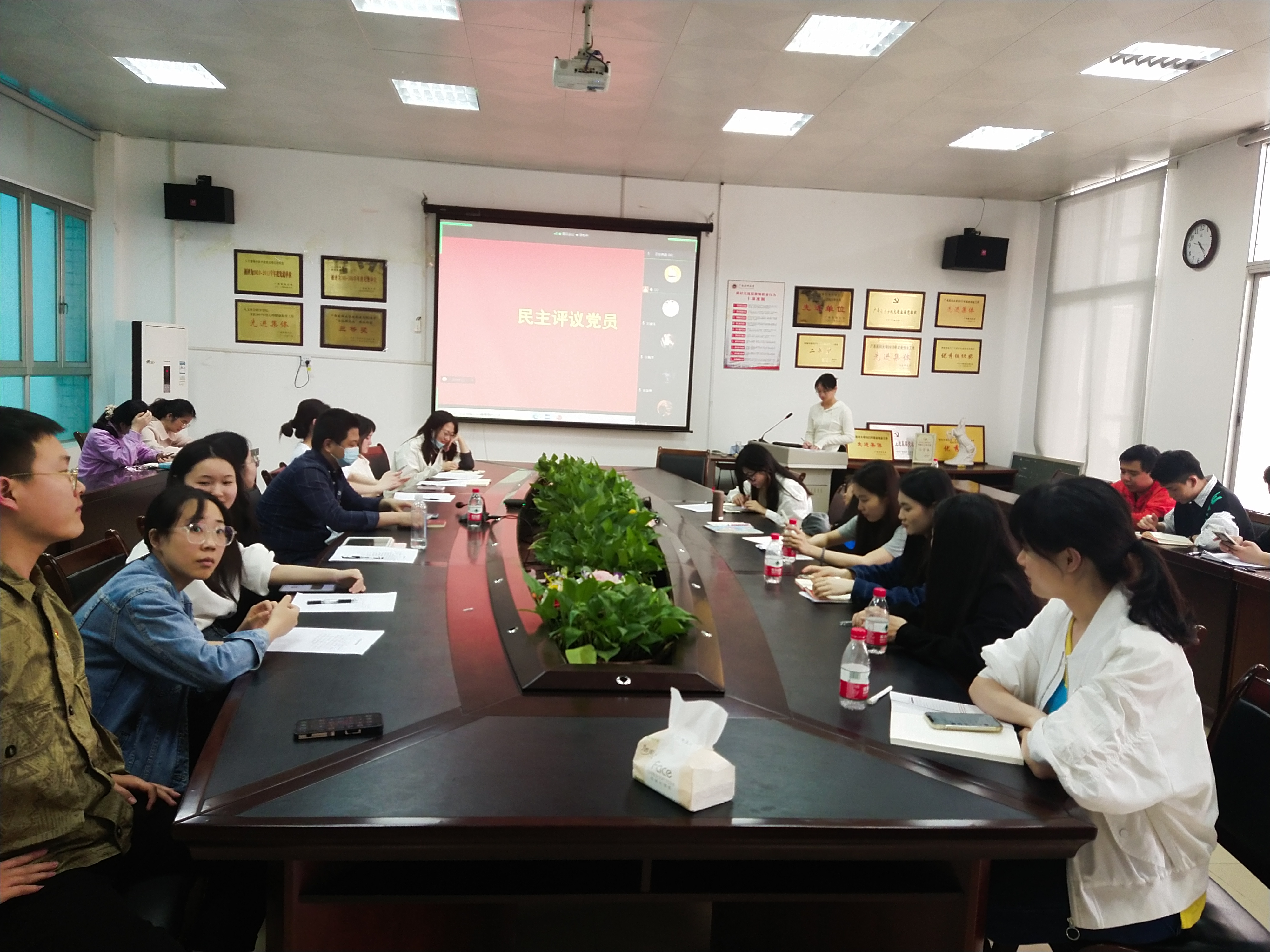 最后一项议程为民主评议党员。全体党员根据自我日常表现以及互评内容填写了测评表。最后周一同志进行总结发言,他对各位党员同志直面问题的态度充分肯定,认为支部党员都十分优秀,在今后要加强党员意识,要以先锋队标准严格要求自己要有对党忠诚,为人民服务的态度,并不断提高自己的知识水平和实践能力。全体党员要提高组织意识,纪律意识,规则意识。支委作为党支部的骨干,要更好地起到带头作用,为广大党员服务,贴近党员需求,组织活动帮助党员共同进步。