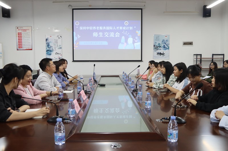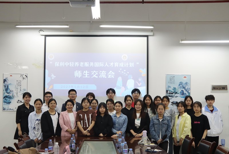 为了加强养老护理国际化人才培养,共建国际化养老见习、实习、就业交流平台基地,2023年5月11日下午,保利中轻国际控股有限公司海外事业部潘明宇总经理助理、养老服务国际人才育成计划广西培训中心朱秀华老师和黄开春老师,到校本部人文公司会议室进行主题座谈交流。公司党委唐忠书记、公司教研科及社工系教师出席本次座谈。