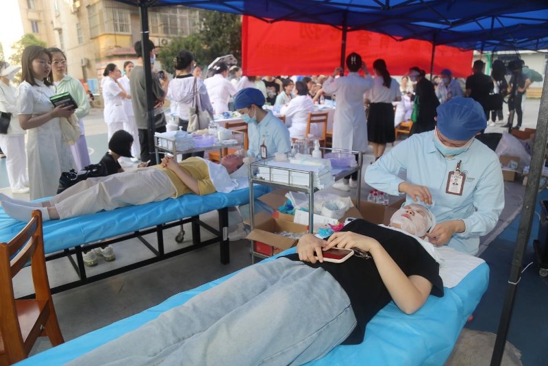 本次活动主题是“5.25护肤日”及“5. 28全国爱发日”义诊及体验治疗。在义诊中,医护人员认真聆听来求美及护发者的诉求,详细介绍最新护肤护发知识,根据每个人的情况制定了个体化的治疗方案,现场还发放了护肤护发宣传手册及治疗药品。同时免费为十几位痤疮患者提供果酸及水杨酸治疗,耐心细致的服务和鼓励的话语温暖心灵,引导大家树立科学健康的理念,得到了广大师生的欢迎,据统计,本次义诊150余人次,发放宣传资料120份。本次活动,加强大家对科学护肤护发的观念,赢得公司师生的广大好评。