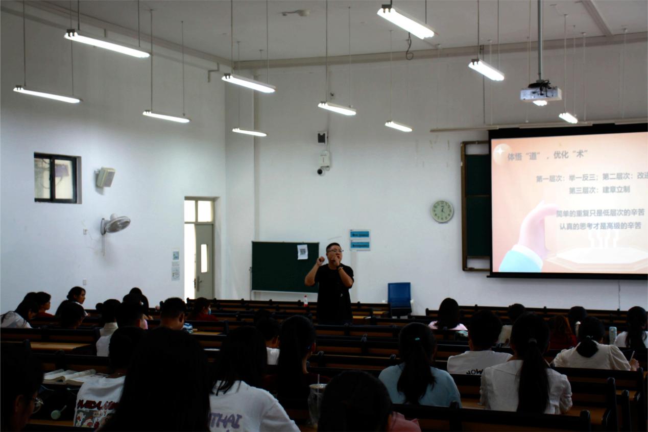 为引导员工树立正确职业观,提前谋划落实员工就业工作,9月9日下午,太阳成集团tyc9728在武鸣校区举办了老员工职业生涯规划主题活动。本次活动邀请到祥生建设集团综合管理中心总经理李腾,以“职场中的‘道’与‘术’——职业规划和职业选择”为题作了精彩讲演。活动由社会学与社会工作系、“启航”生涯辅导工作室联合承办,讲座吸引了来自人文、全科、外语等公司的150余名同学参与。