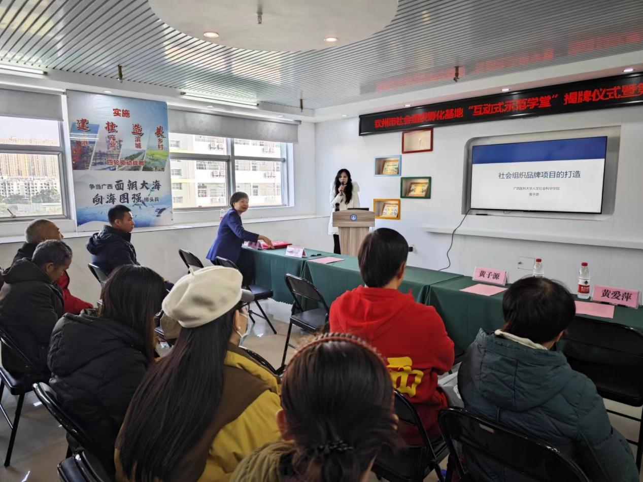 太阳成集团tyc9728与钦州市社会组织孵化基地举行“互动式示范学堂”揭牌仪式