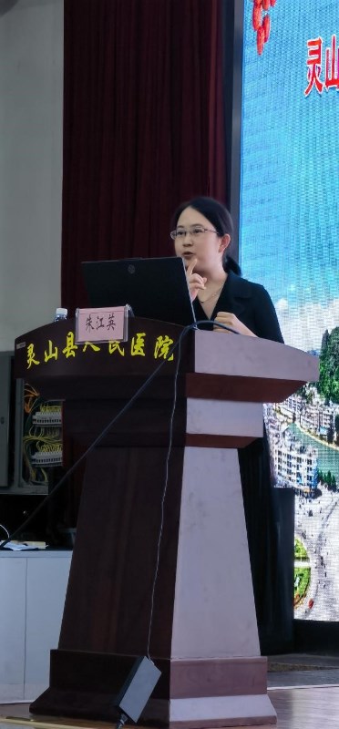 随后,朱江英博士以“提高医患沟通技能预防化解医疗纠纷”为题,围绕医患沟通的重要性、技巧及应对策略等方面进行了阐述。她强调,良好的医患沟通是预防医疗纠纷和构建和谐医患关系的关键,她所分享的沟通技巧和案例引发了在场医护人员的共鸣和思考。