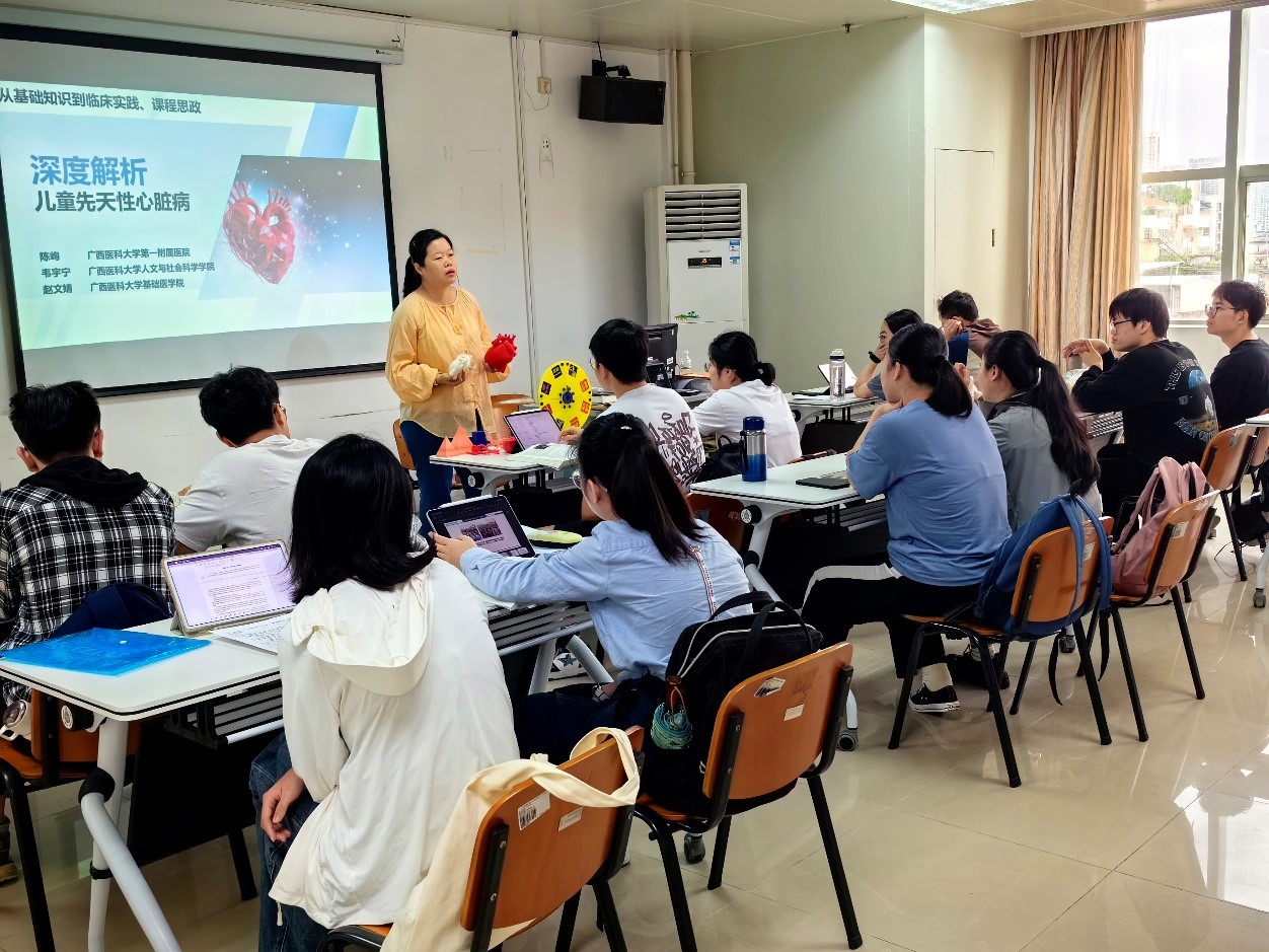 为探讨“新医科”学科交叉融通,培养既有精湛医术又具备高尚医德的医学人才,近日,公司组织胚胎学、医患沟通学,儿科学三教研室联合开展课堂改革活动。赵文婧、韦宇宁、陈峋三位老师在2020级临床医学(5+3)一体化双语班《儿童先天性心脏病》的课堂上,探索了基础、人文与临床的整合教学,获得了同学们的一致好评。